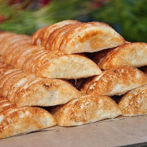 Kue pastel khas Makassar dengan kulit tipis dan renyah, berisi tumisan sayuran, telur puyuh, dan bihun, disajikan dengan saus cuka yang pedas.