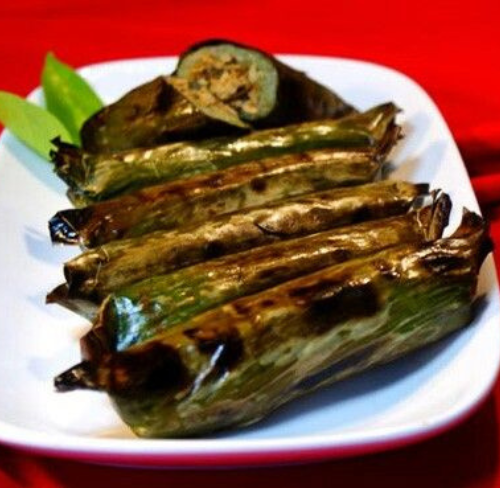 Makanan serupa lemper bakar, terbuat dari beras ketan yang diisi dengan tumisan daging sapi atau ikan, dibungkus daun pisang, dan dimasak dengan cara dikukus lalu dibakar.