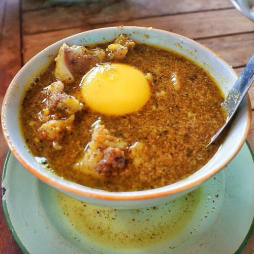 Sajian sup daging dan jeroan sapi yang mirip Coto Makassar, namun dengan kuah yang lebih kental karena tambahan kelapa parut sangrai.