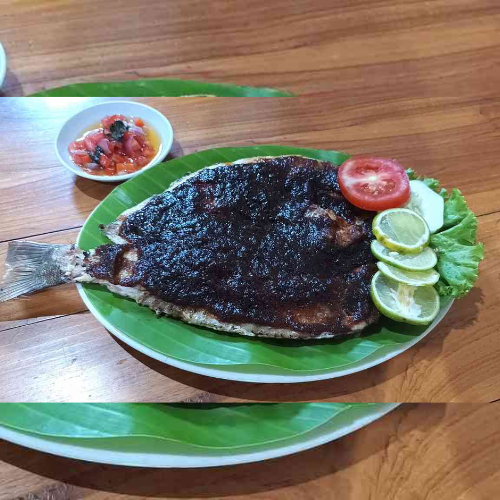 Ikan segar yang dibakar dengan bumbu khas parape yang manis dan pedas, menciptakan cita rasa unik yang meresap sempurna.